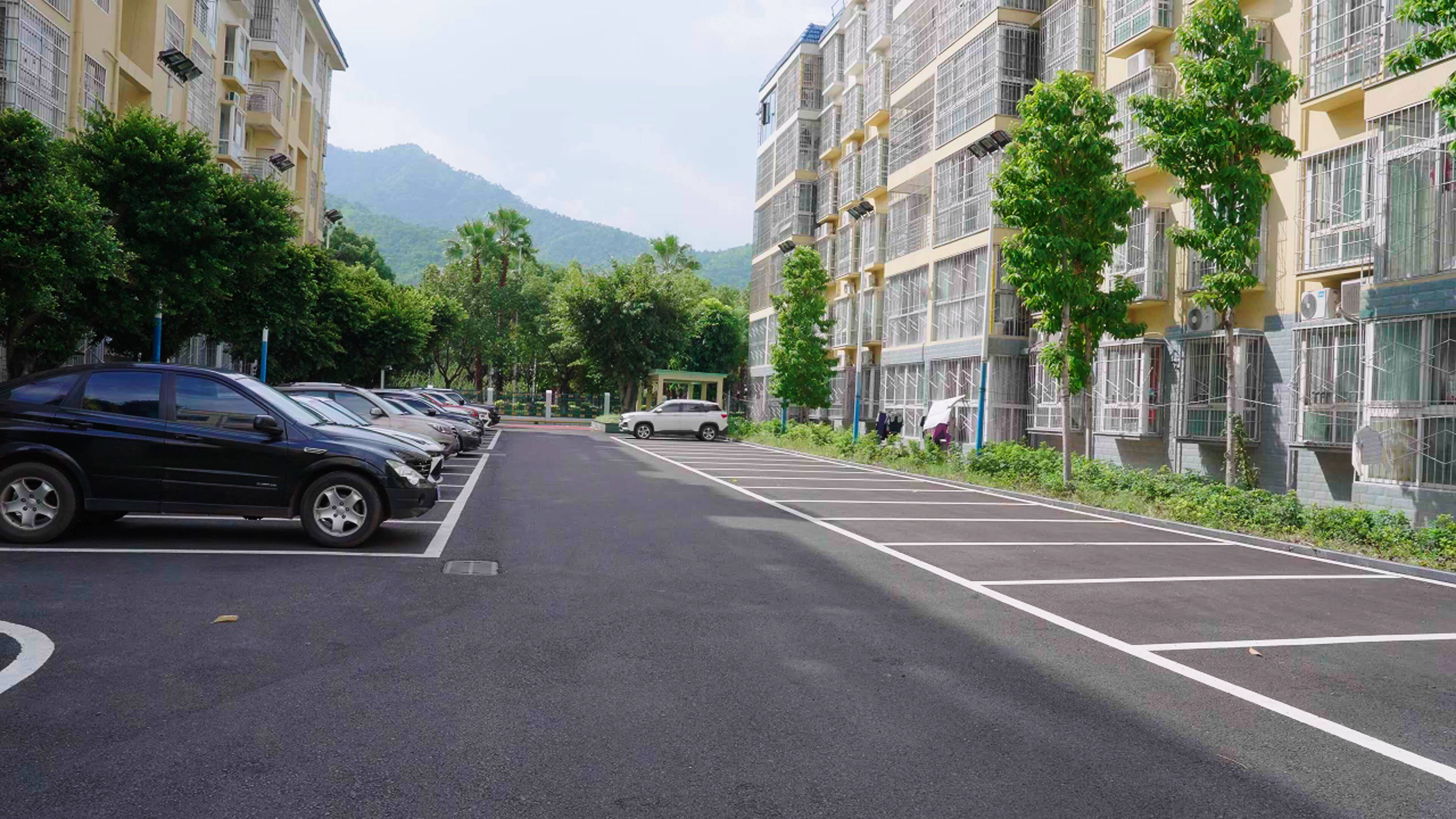 芳满庭小区改造后整齐的停车位