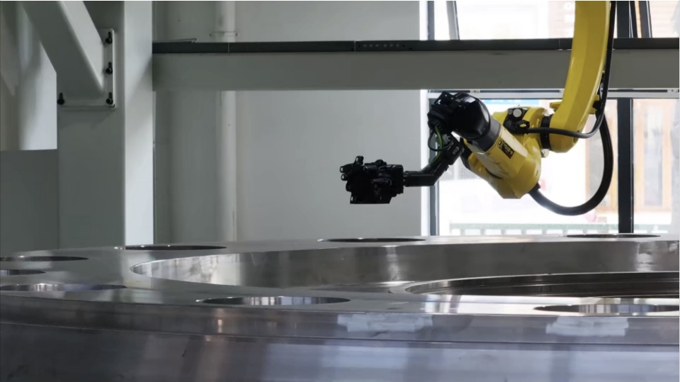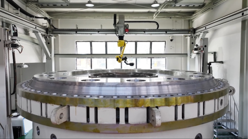 走进东方电机大型清洁能源装备重型制造数字化车间,机械臂正对一个抽水蓄能机组的底环部件进行精确测量,该部件重量超过70余吨。过去,装配几十上百吨的庞然大物往往依赖人工靠经验的传统模式,而如今,整个流程已全面升级为数字化、智能化的新模式。