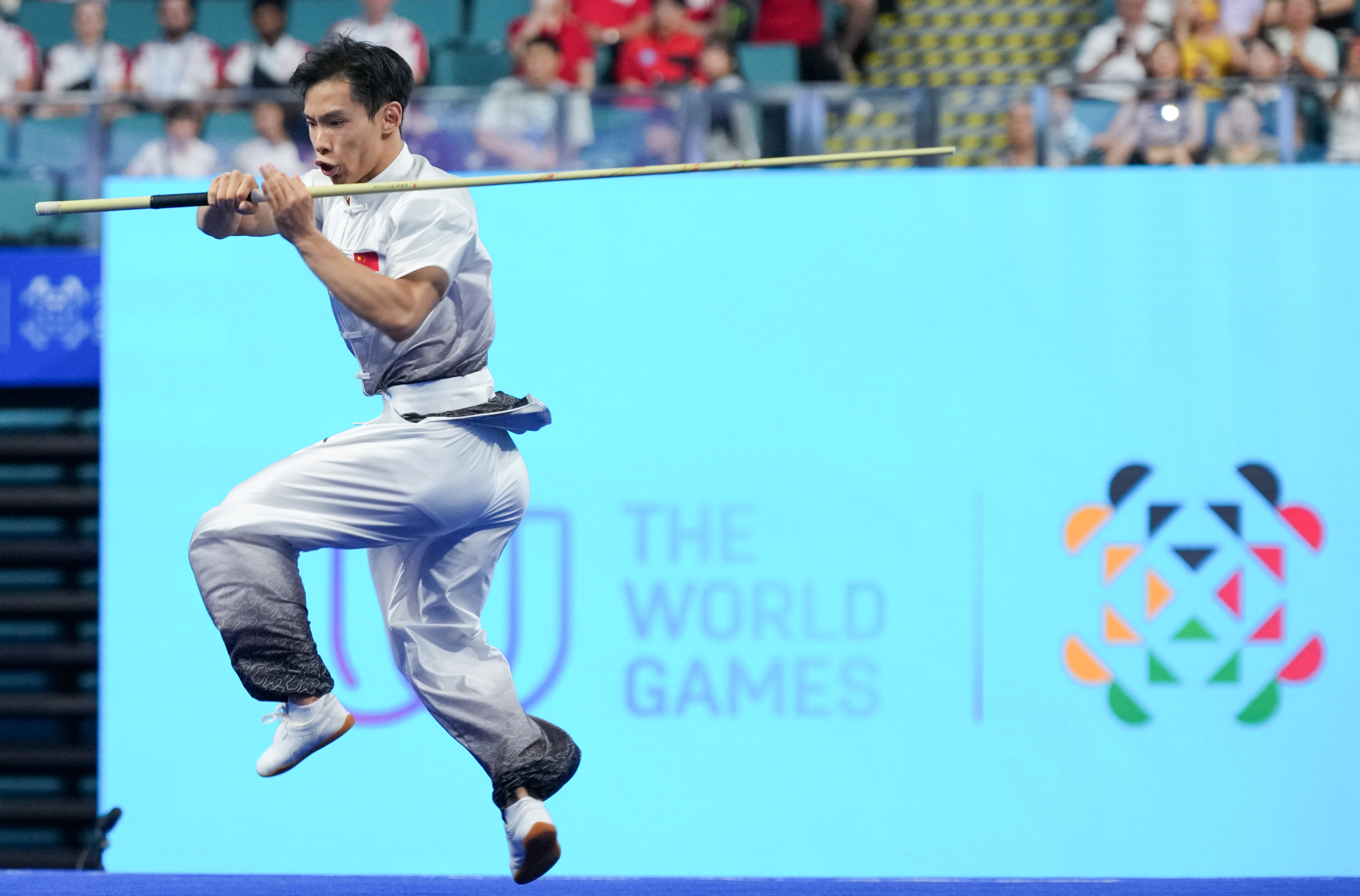 2025年成都世运会,是高久尚武术生涯的重要里程碑。作为中国男子组唯一代表,首次参加国际赛事的他,既激动又备感责任重大。“队友卢卓灵拿到中国首金,我压力挺大的,晚上睡觉都在想动作。”但多年大赛历练出的成熟心态,让他学会了专注,“抛开杂念,把平时练的发挥出来就好。”